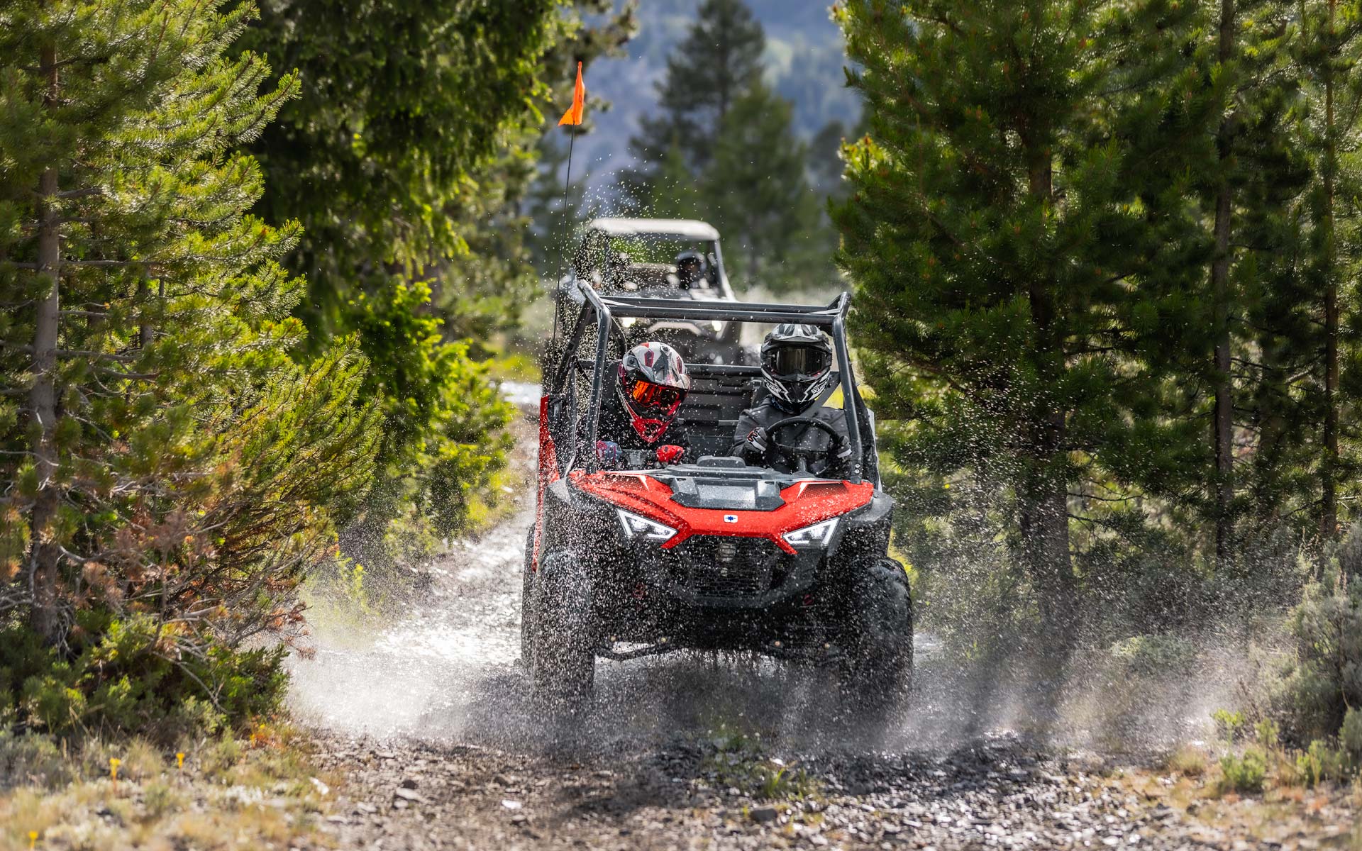 Enjoy peace of mind knowing the RZR comes with industry-leading safety features including a pin code start, adjustable speed limiter, geofencing, safety nets, industry-exclusive safety kit, and helmet aware technology.